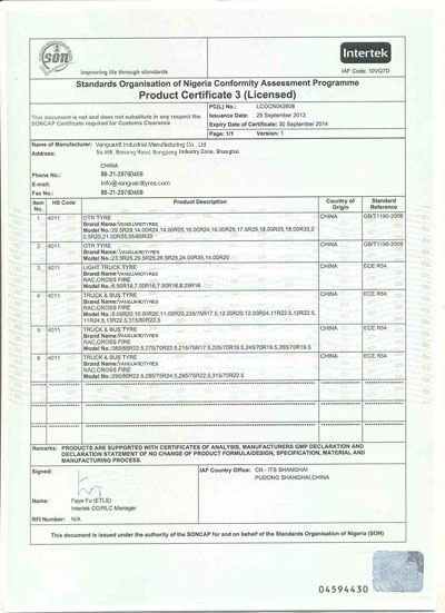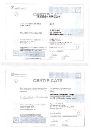 ¡÷Certification for domestic market